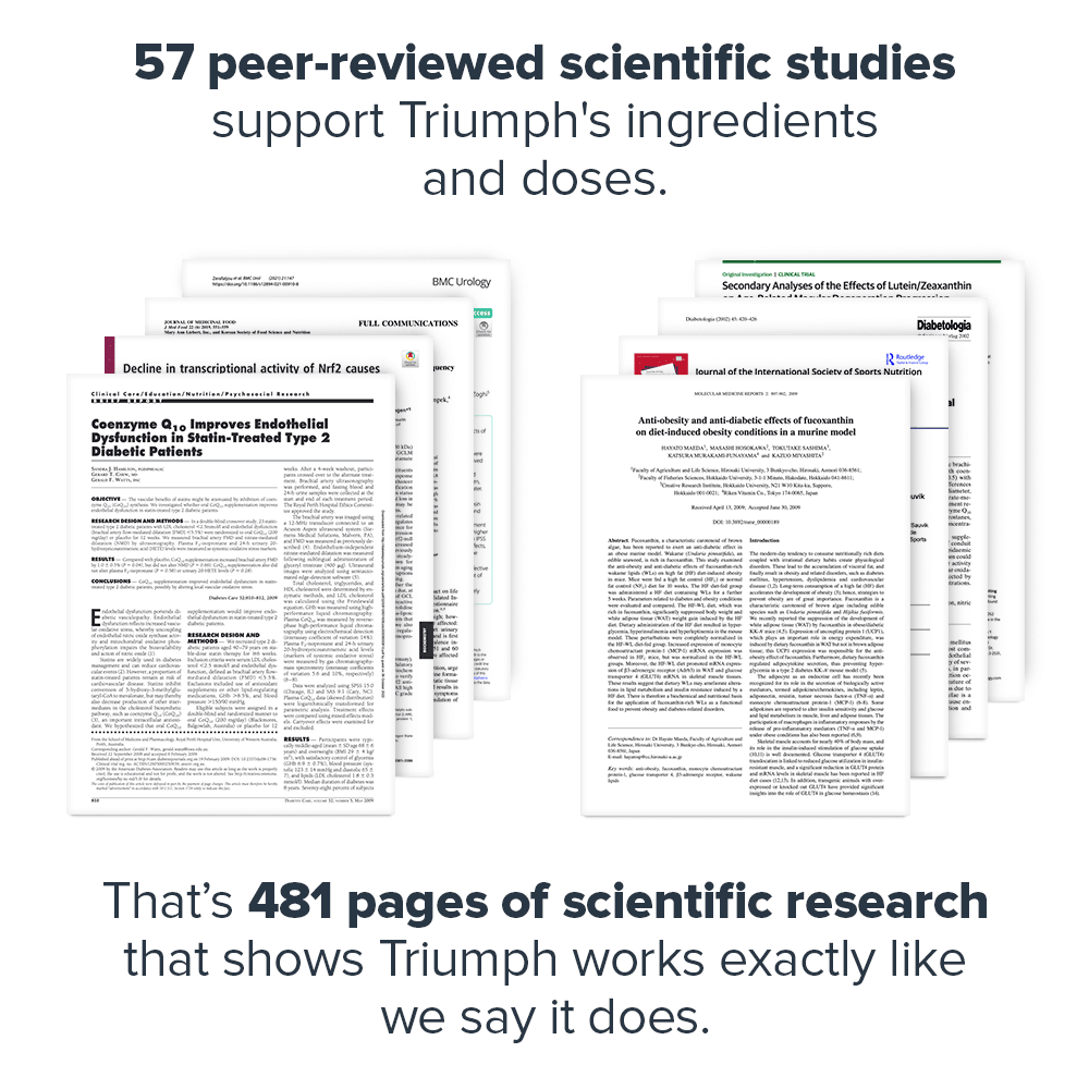 ✅57 peer-reviewed scientific studies support Triumph’s combination of ingredients and doses